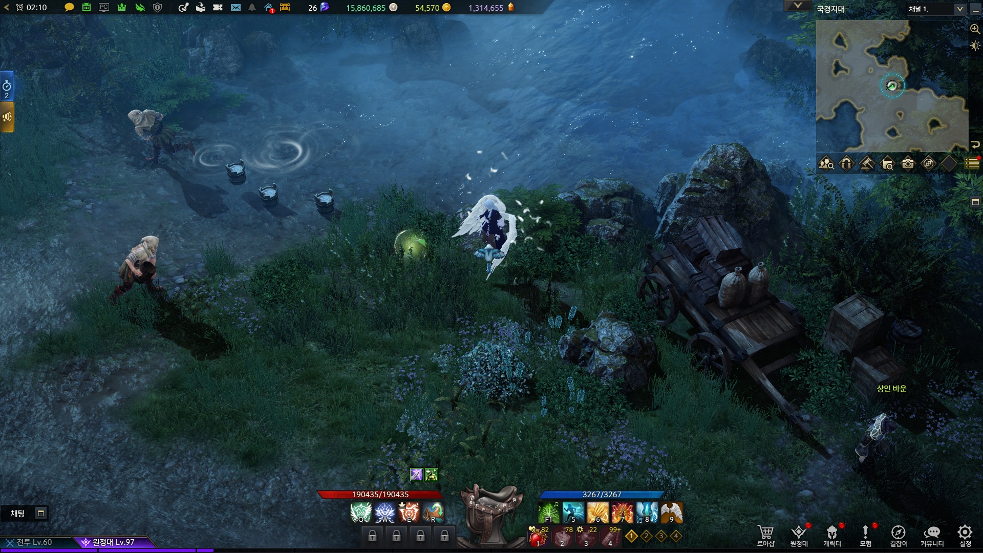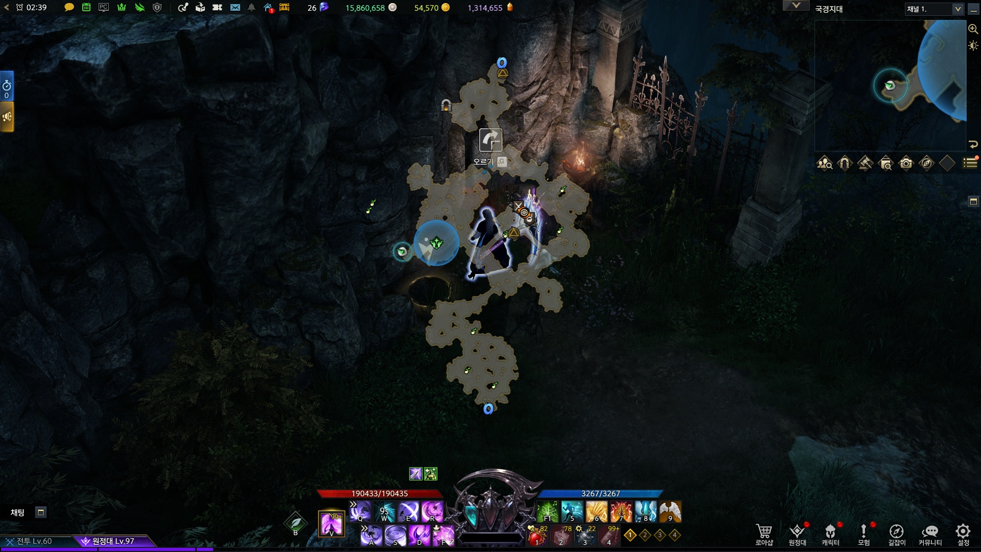 지도상의 위치 주변 몬스터를 잡으면 생기는 상호작용을 통해 위로 올라갑니다.