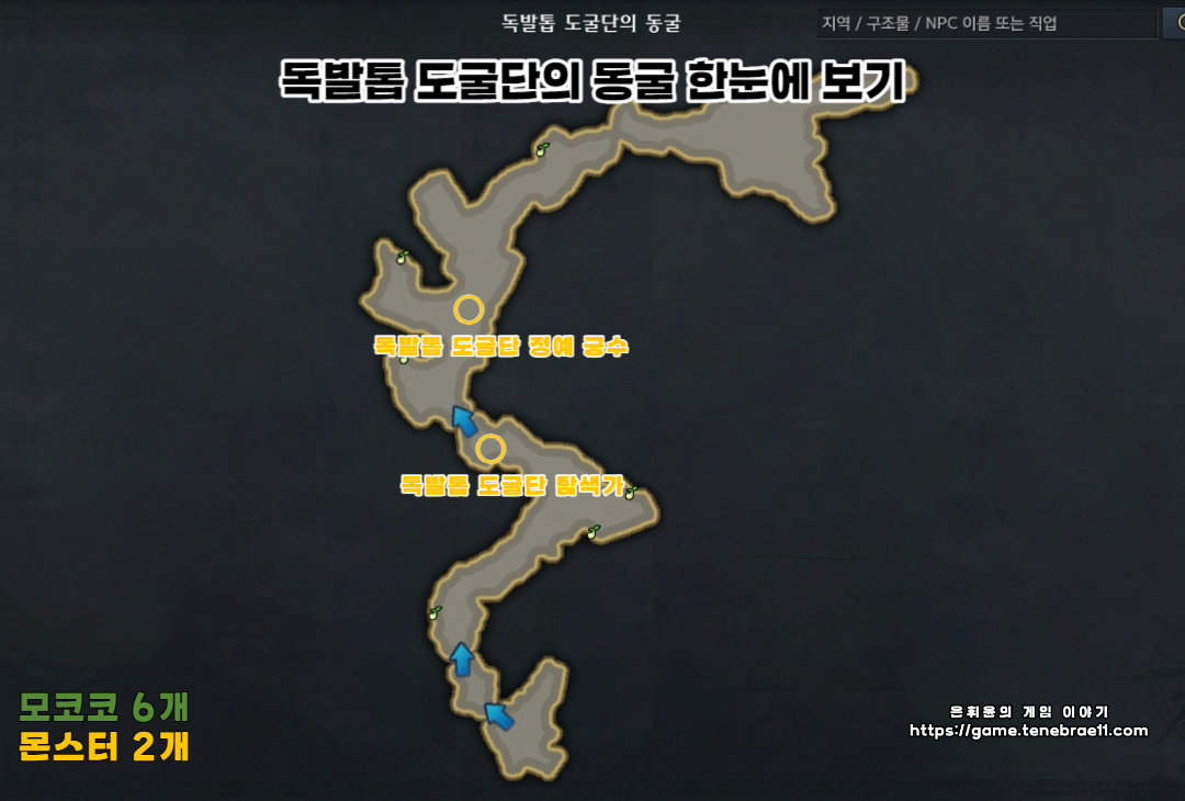 오늘은 아르테미스 대륙 로그힐 던전 독발톱 도굴단의 동굴 모코코 위치를 알아보겠습니다
