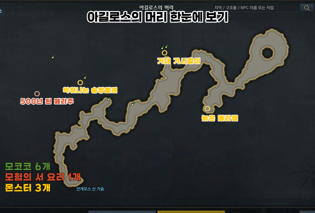 오늘은 아르테미스 대륙 안게모스 산기슭 아길로스의 머리 던전 모코코 위치를 알아보겠습니다.