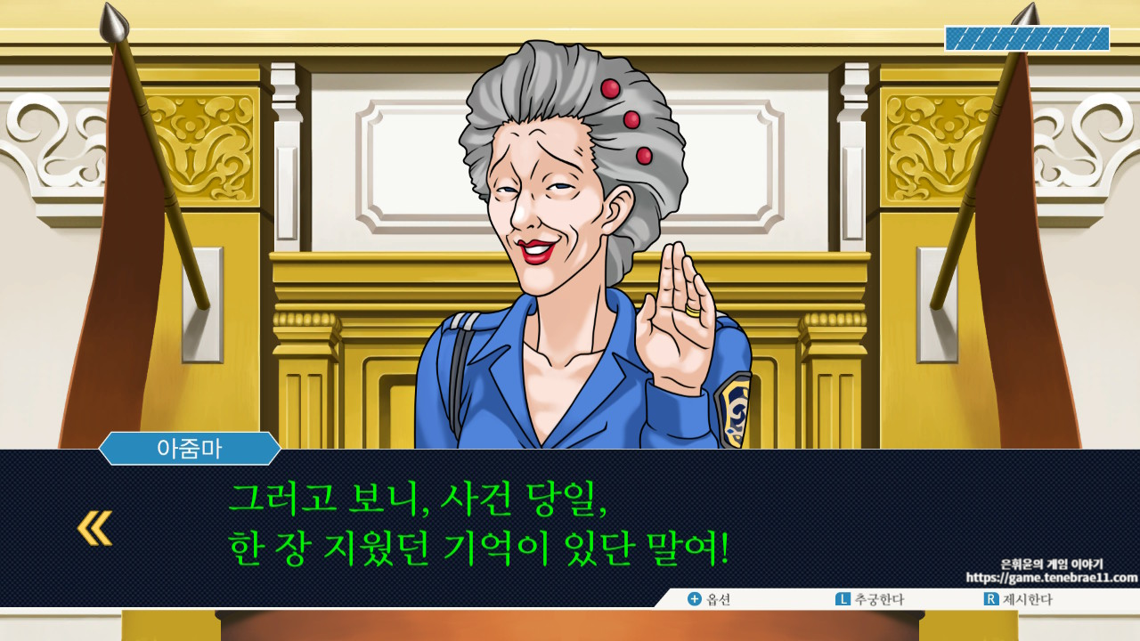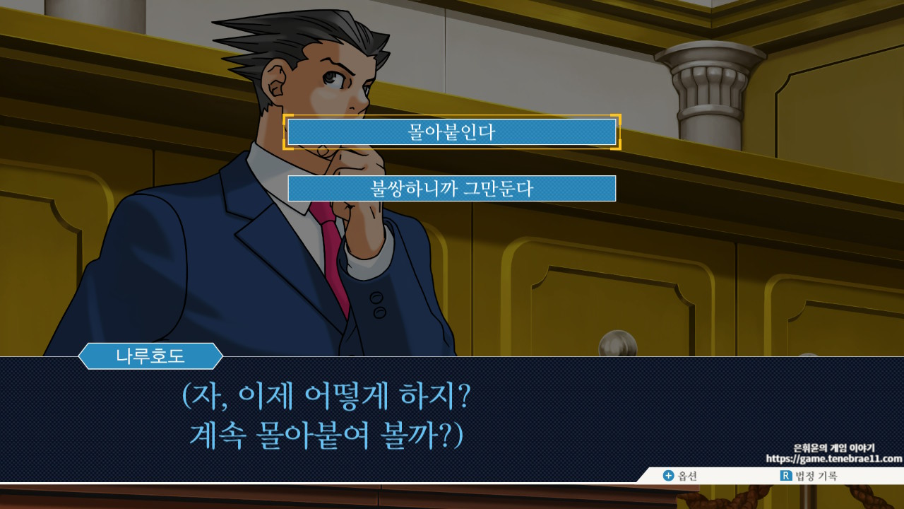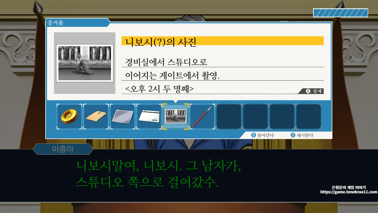해당 포스팅에서는 역전재판 1 세번째 에피소드인 역전의 토노사맨 2일째 법정편 공략을 다루고 있습니다.