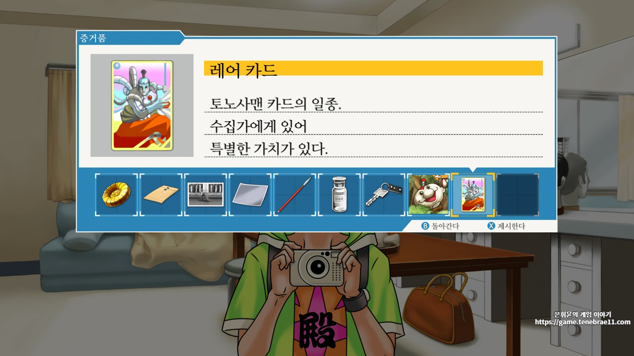 해당 포스팅에서는 역전재판 1 세번째 에피소드인 역전의 토노사맨 2일째 탐정편 공략을 다루고 있습니다.