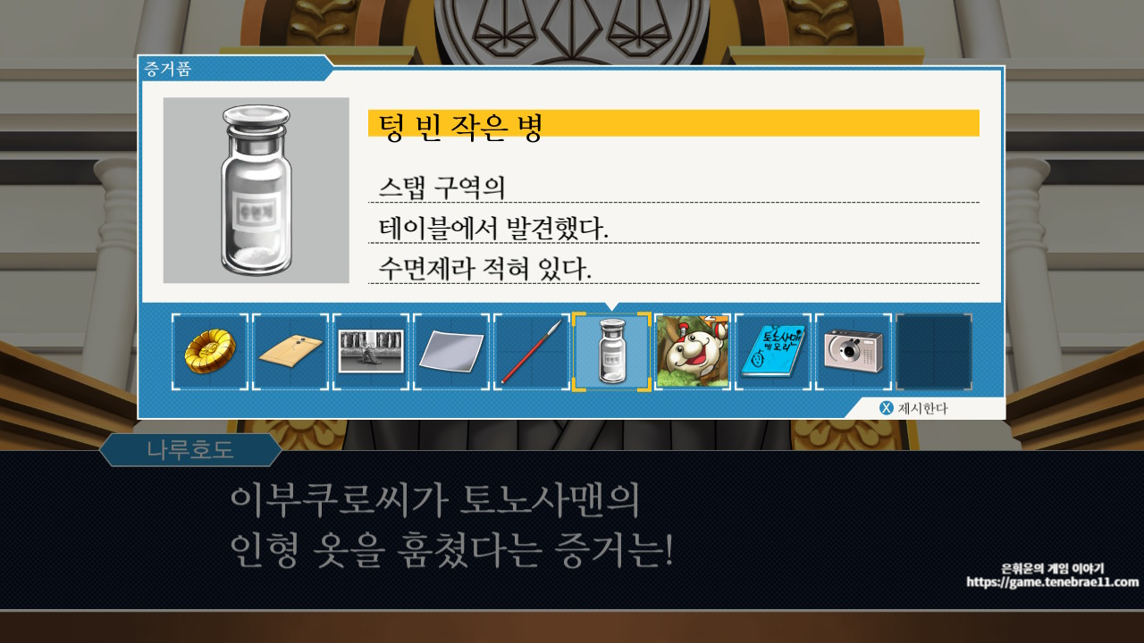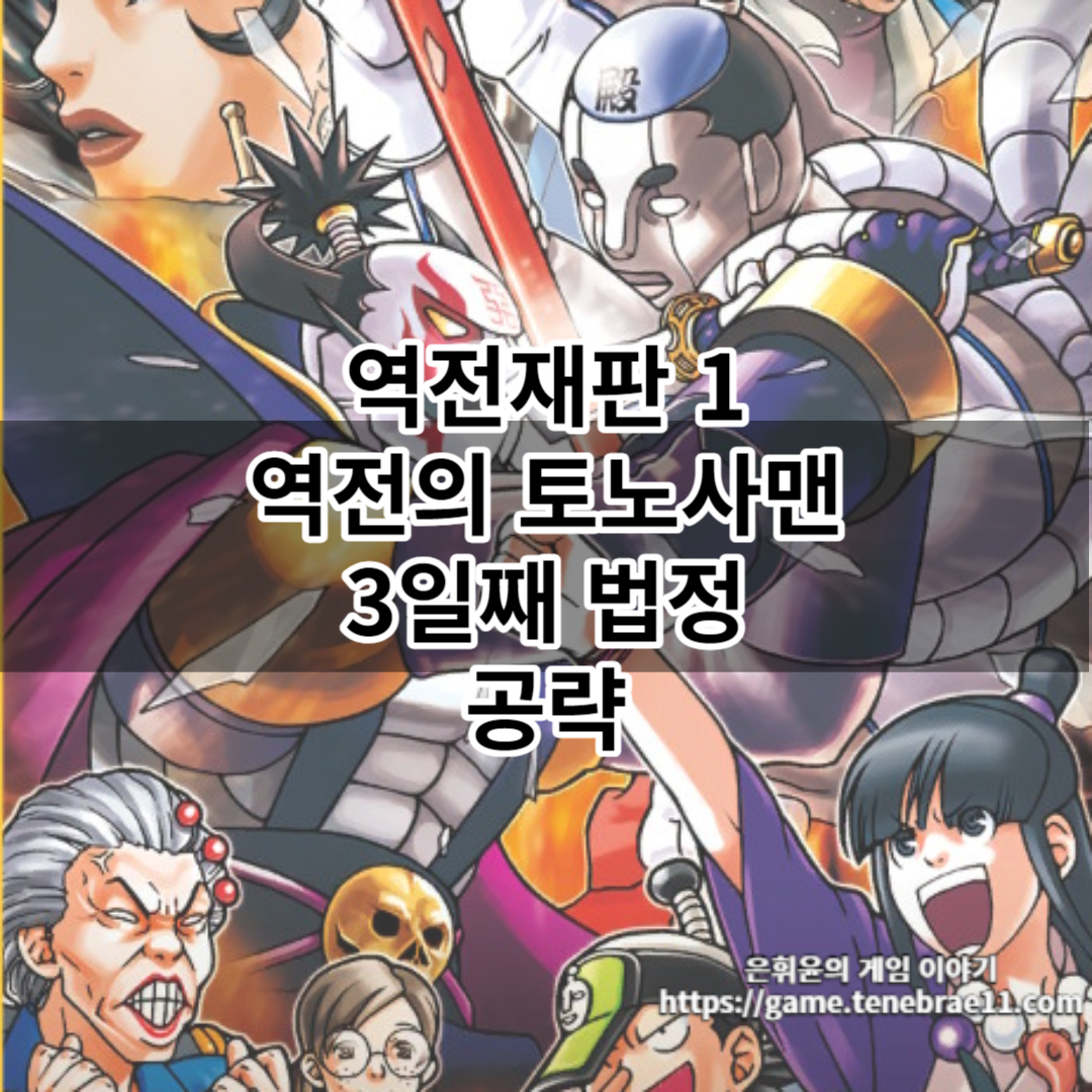 해당 포스팅에서는 역전재판 1 세번째 에피소드인 역전의 토노사맨 3일째 법정편 공략을 다루고 있습니다.