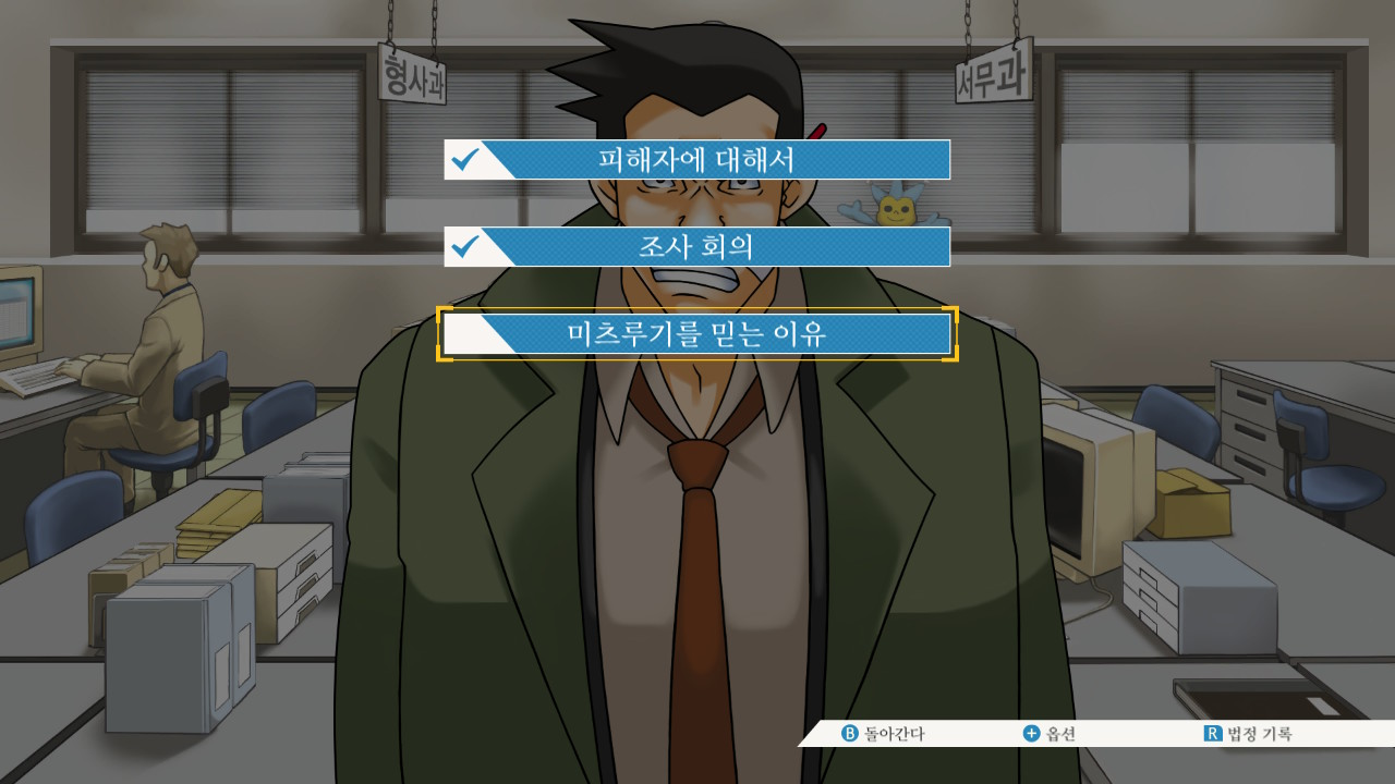 미츠루기와 모든 대화 진행 후 [변호사 배지] 제시