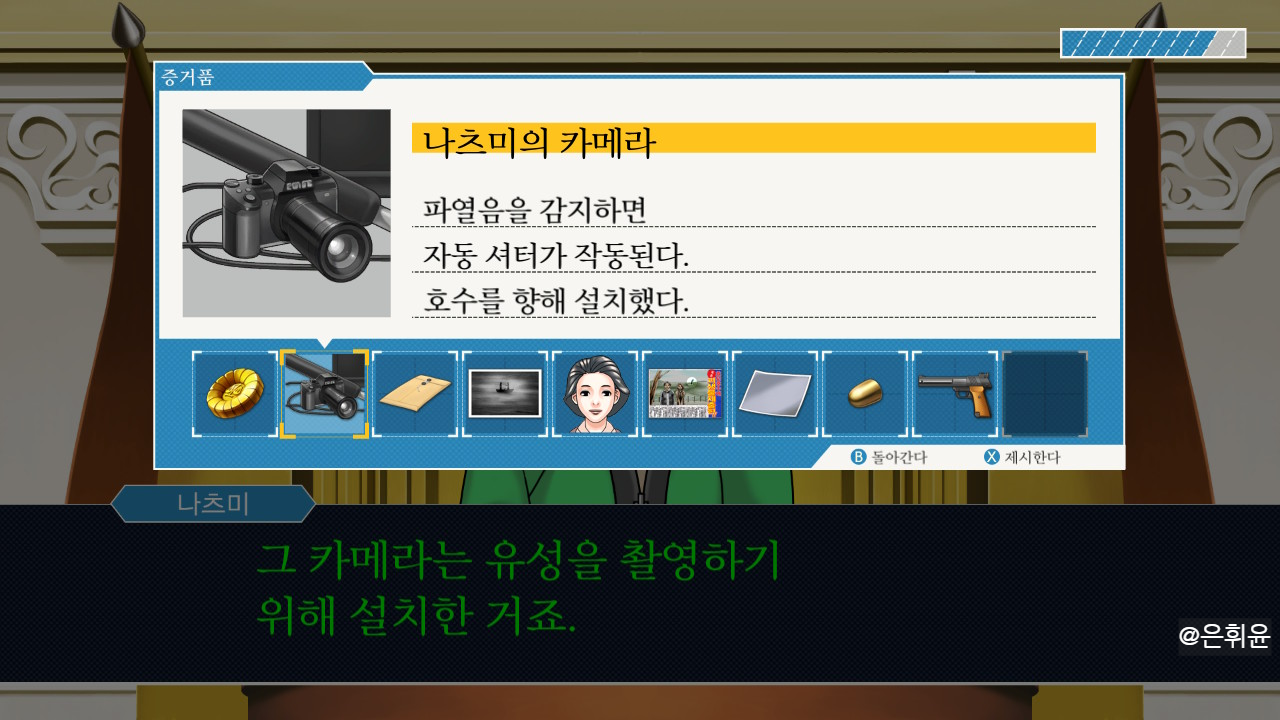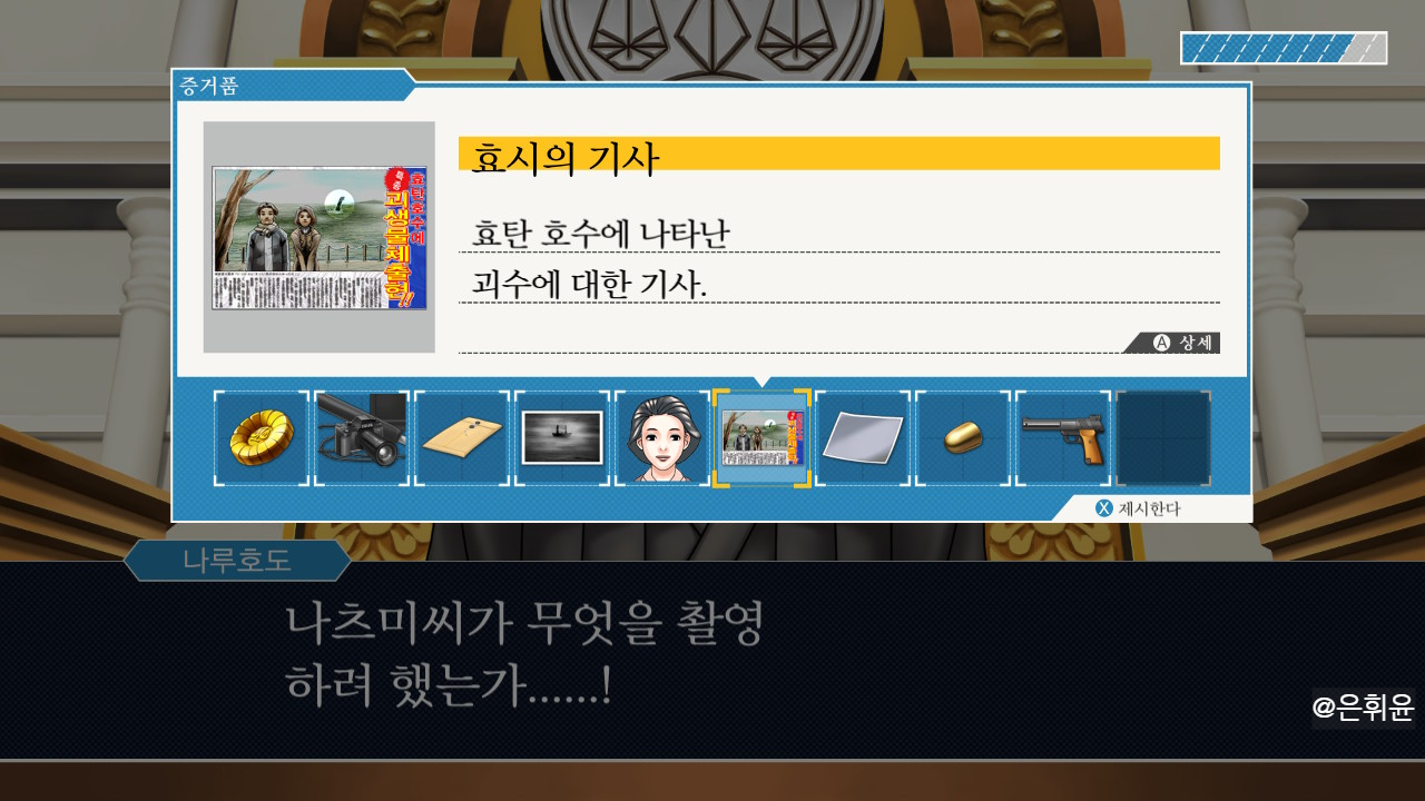 "증인이 효시의 사진을 찍으려고 했다는 걸 증명하는 증거품을!"