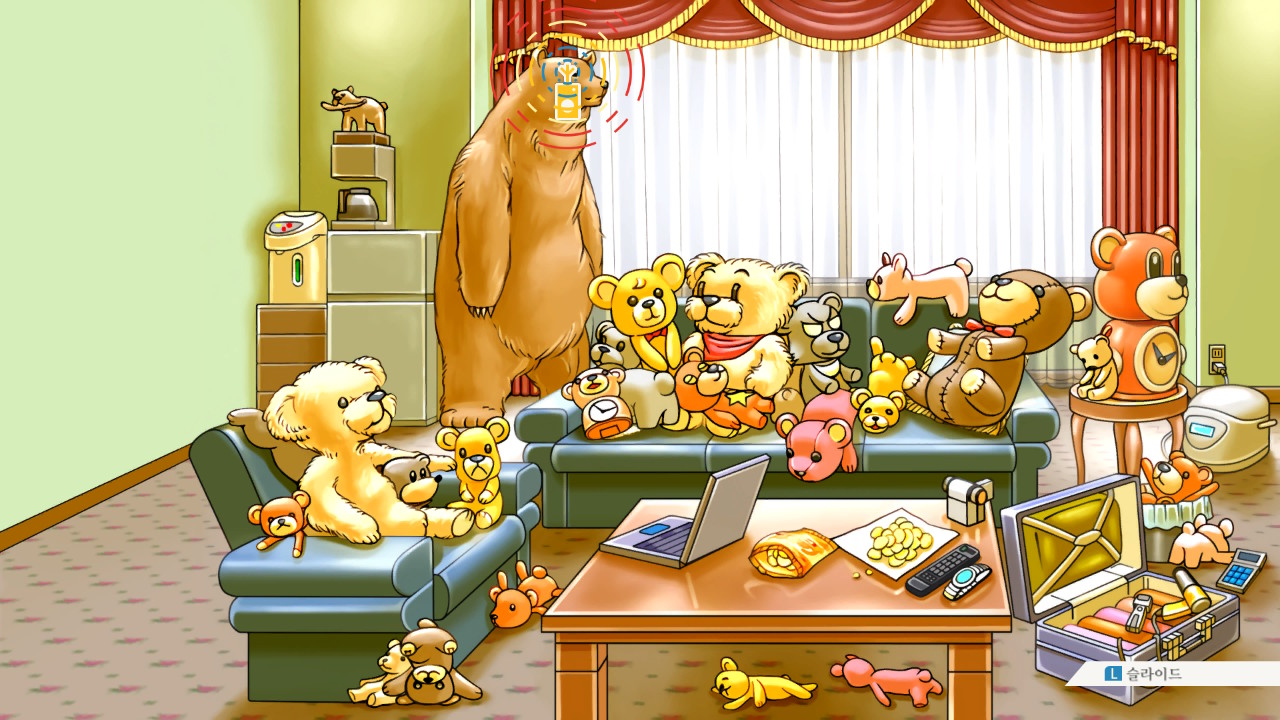 전파 탐지기를 창문 앞에 서 있는 곰인형 눈 부분으로 이동