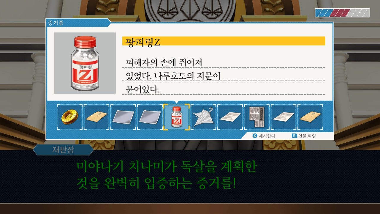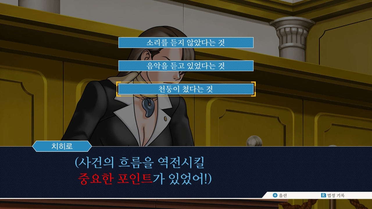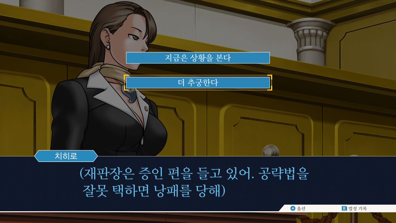 (재판장은 증인 편을 들고 있어. 공략법을 잘못 택하면 낭패를 당해)