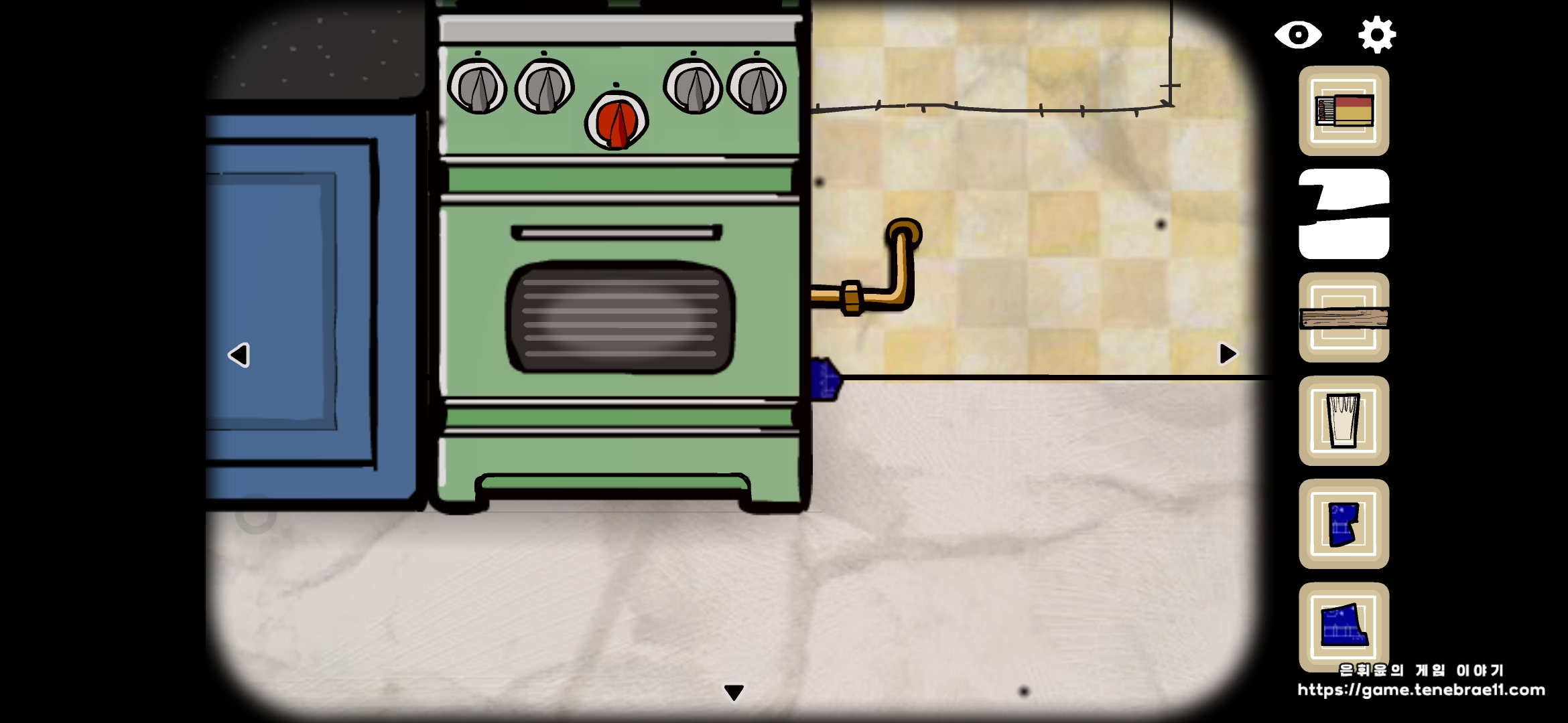 주방으로 이동해서 싱크대 아래 선반을 열고 컵을 획득합니다.