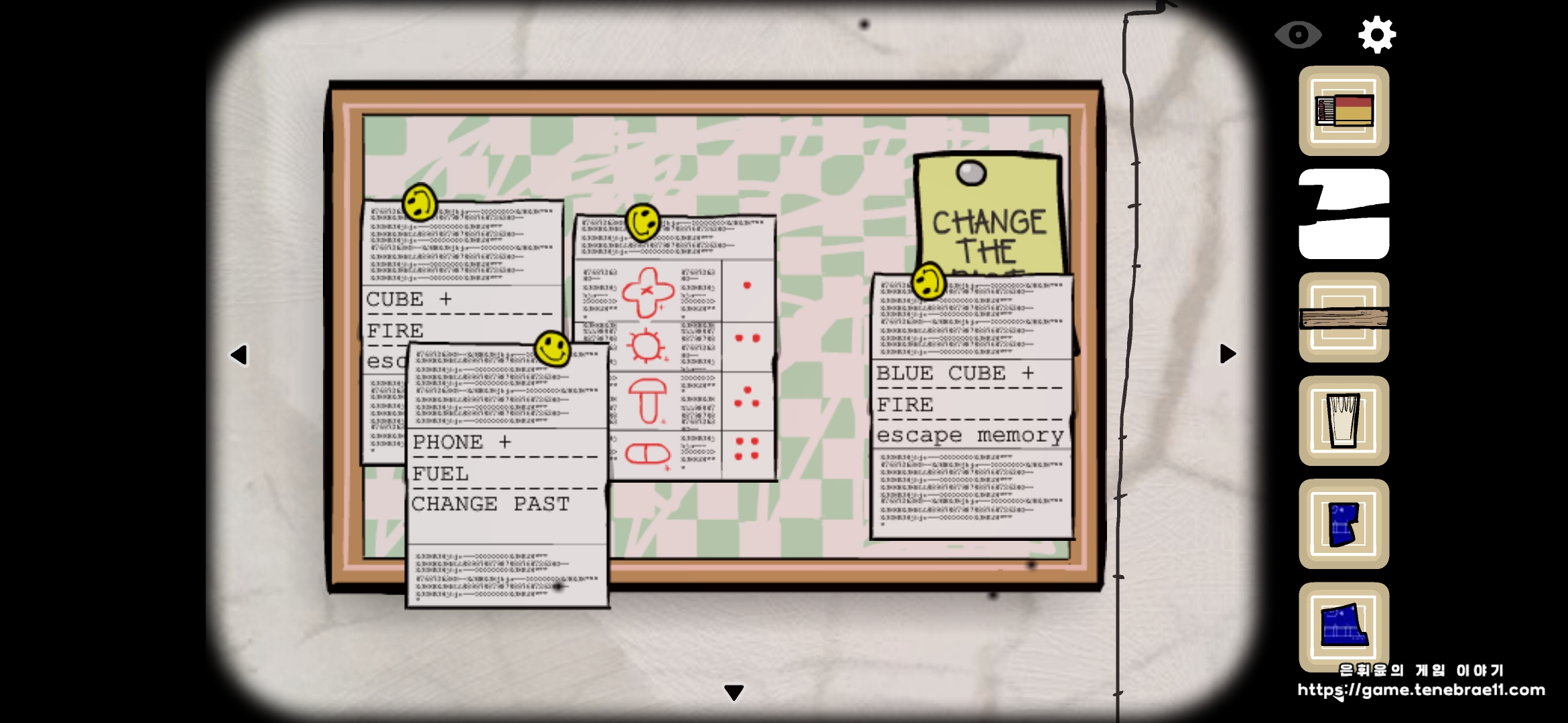 보드에 붙은 메모들에는 엔딩의 힌트가 숨어있습니다.