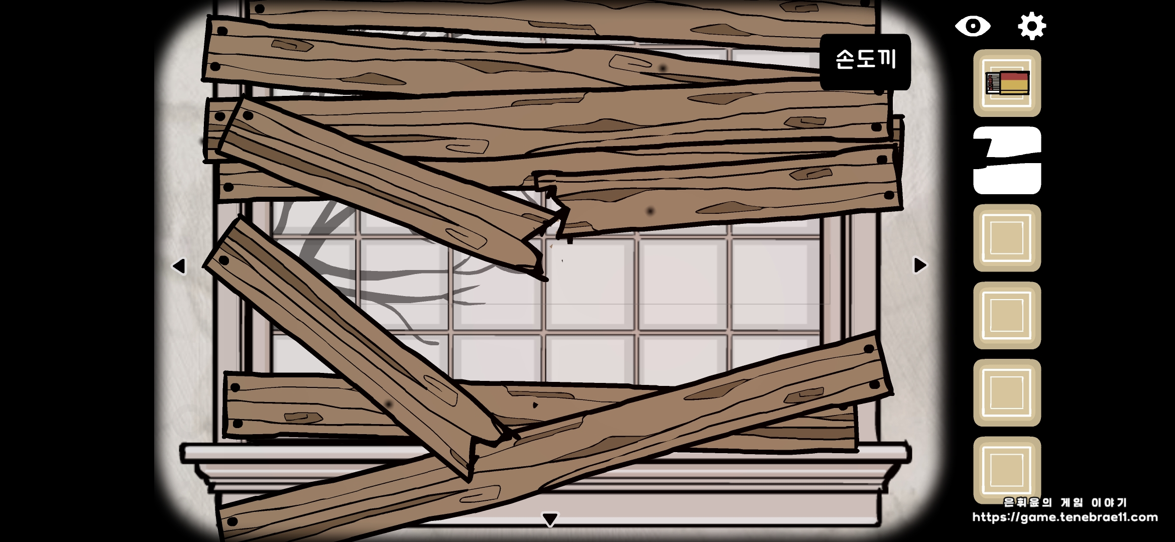 창문을 클릭한 뒤 손도끼로 판자를 부숴줍니다.