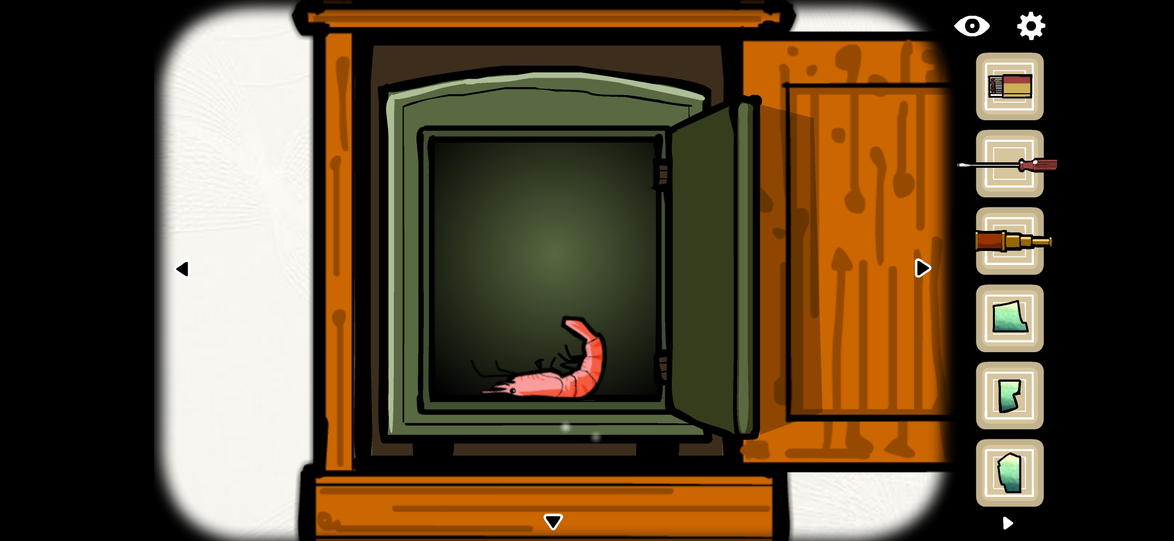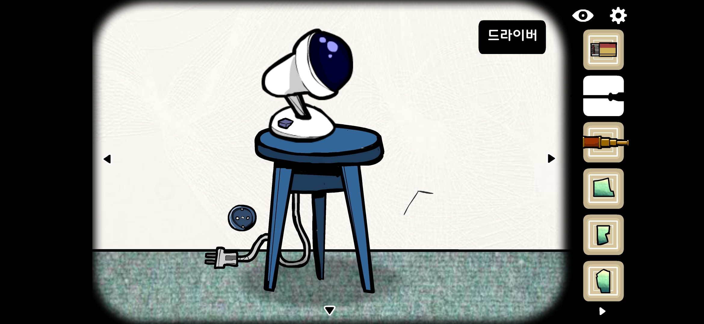 초록색 서랍을 열어 성냥, 드라이버를 획득합니다.