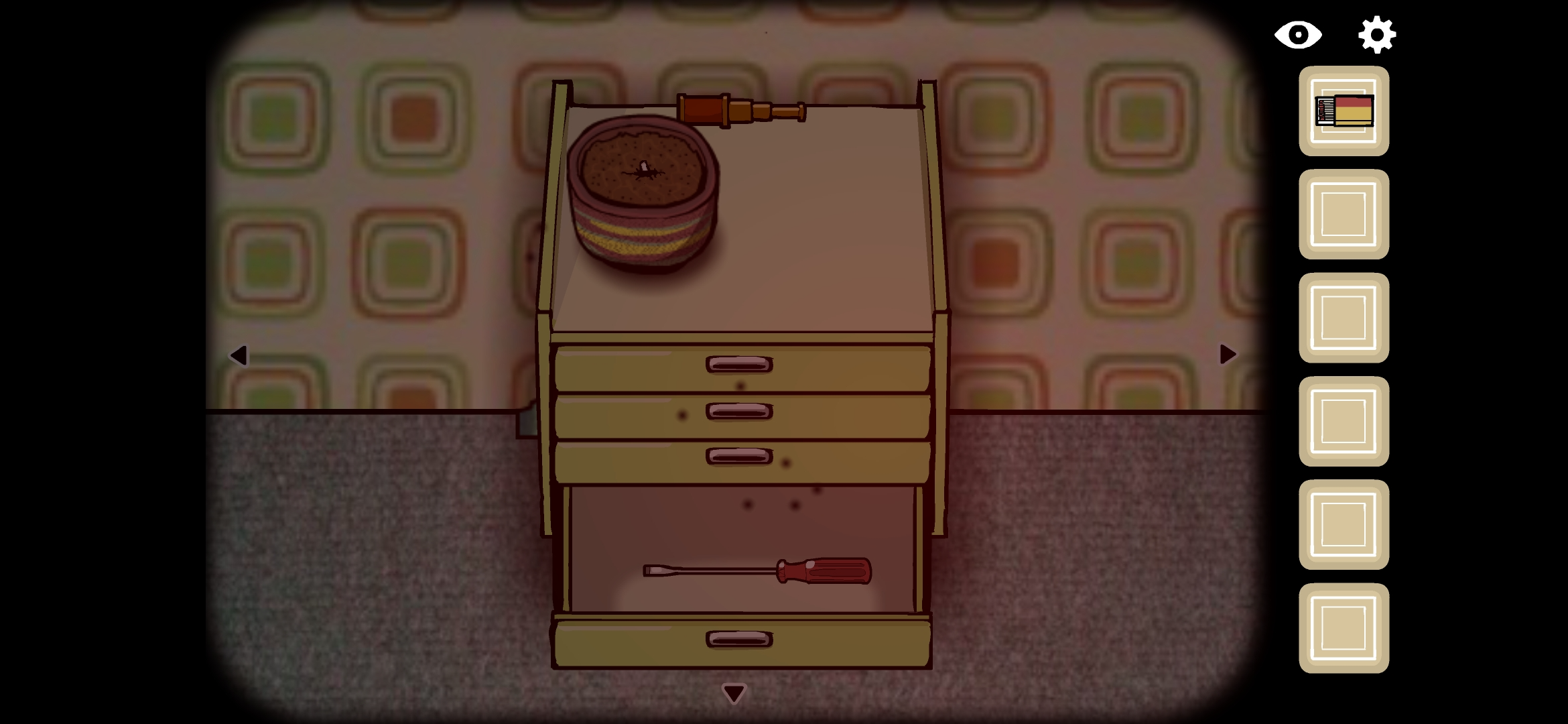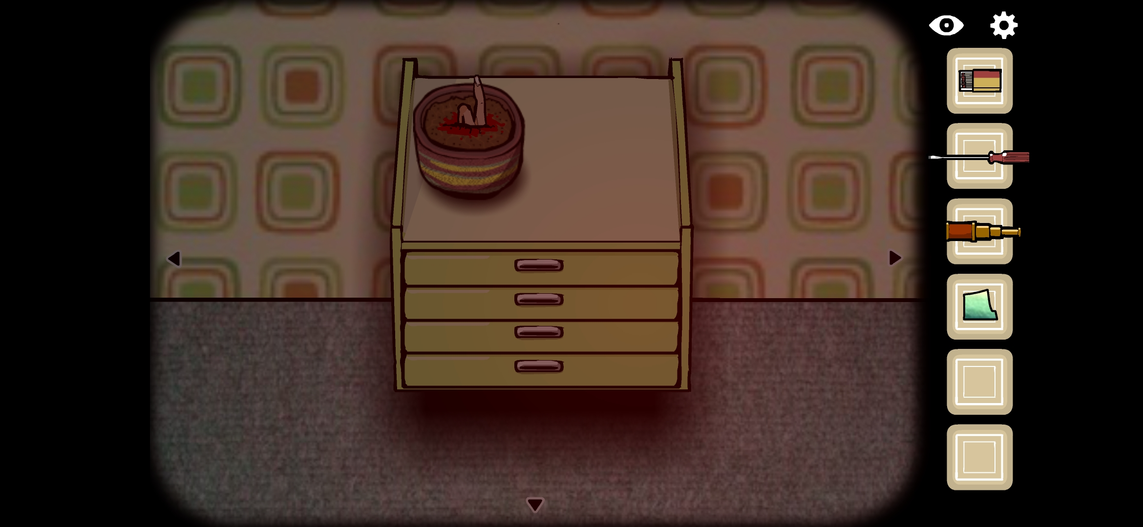 서랍 위 화분을 계속 클릭하다보면 화분 안에서 손이 나왔다가 사라지며 사진 조각을 획득할 수 있습니다.